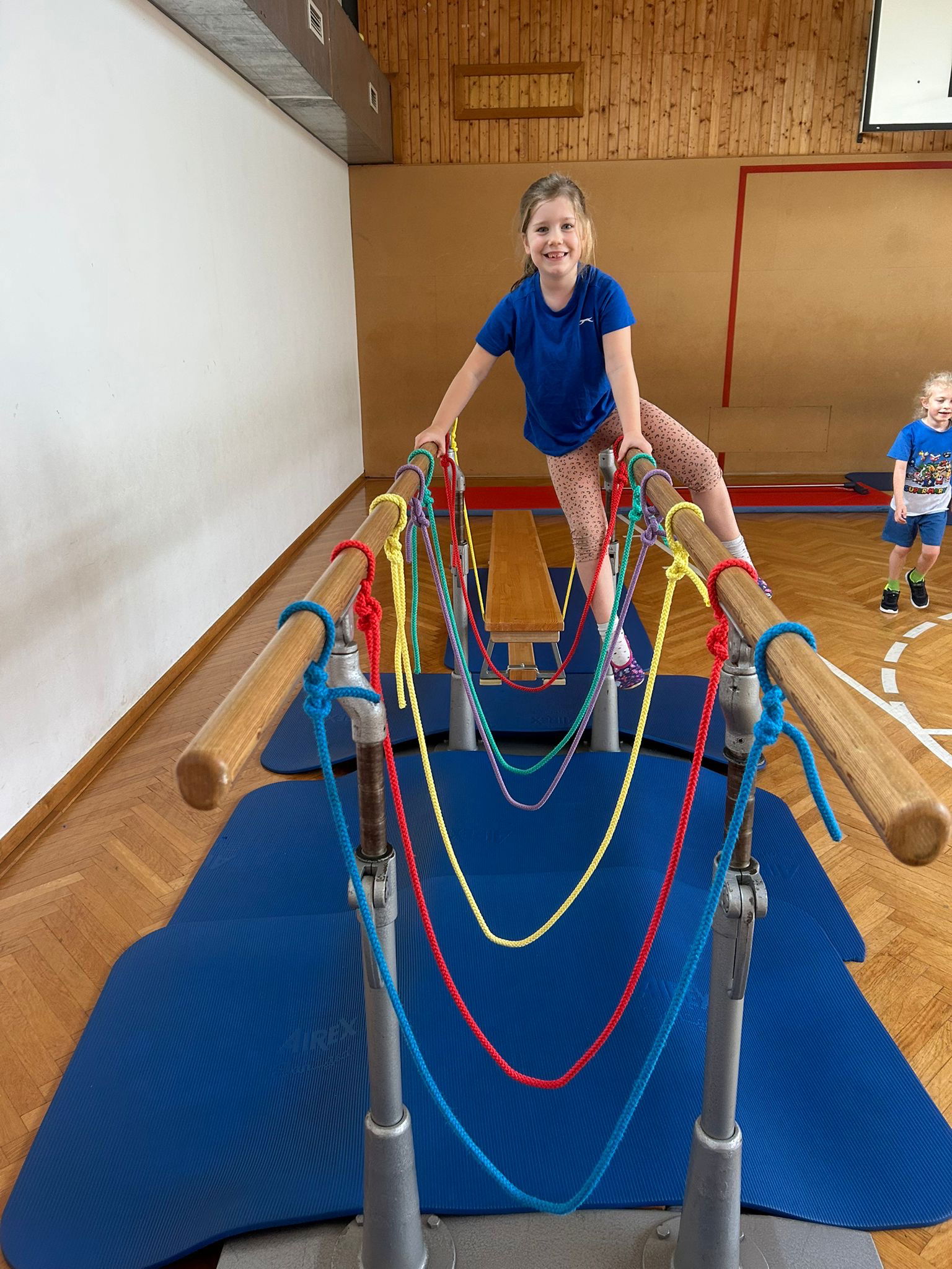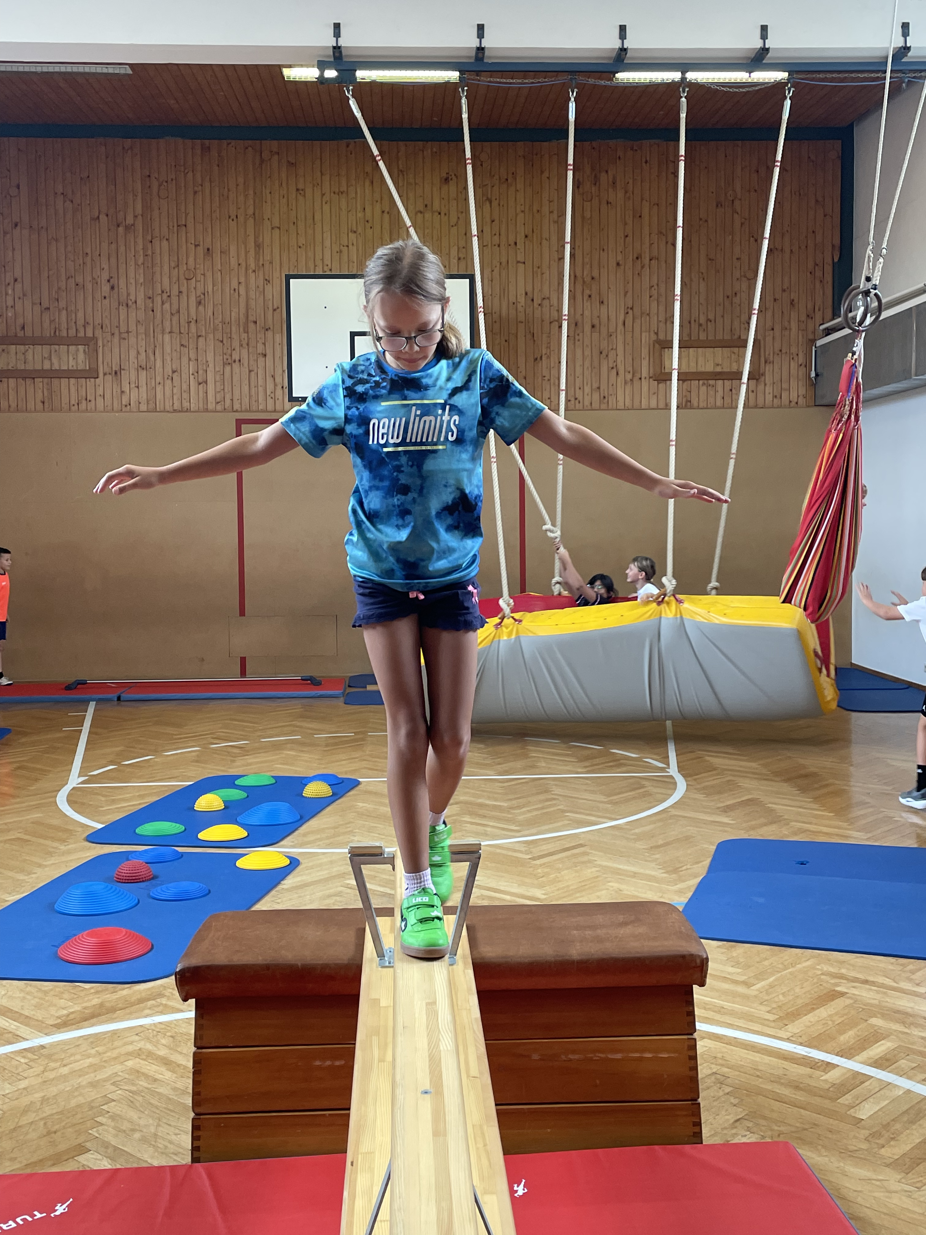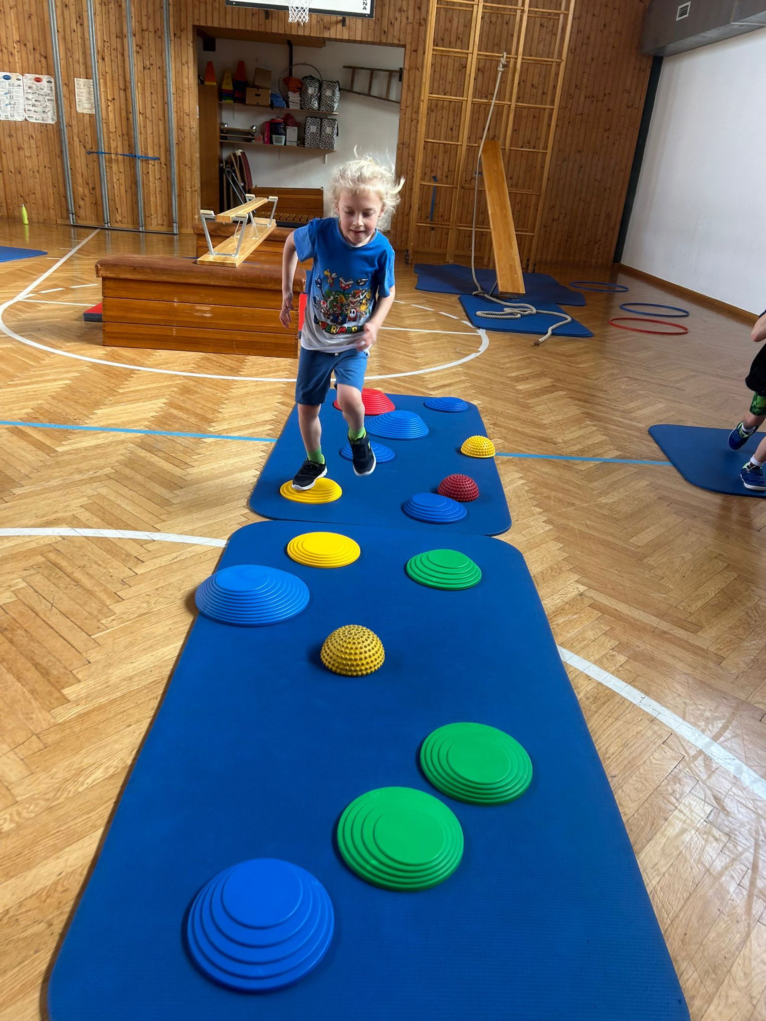 Jeden Dienstag verwandelt sich unser Turnsaal in eine abwechslungsreiche Bewegungslandschaft, die wir gemeinsam mit dem Kindergarten gestalten. Dabei steht die Bewegung der Schülerinnen und Schüler ganz im Mittelpunkt. Mit viel Freude entdecken die Kinder die verschiedenen Stationen und stärken so ihre Koordination und ihr Körperbewusstsein.