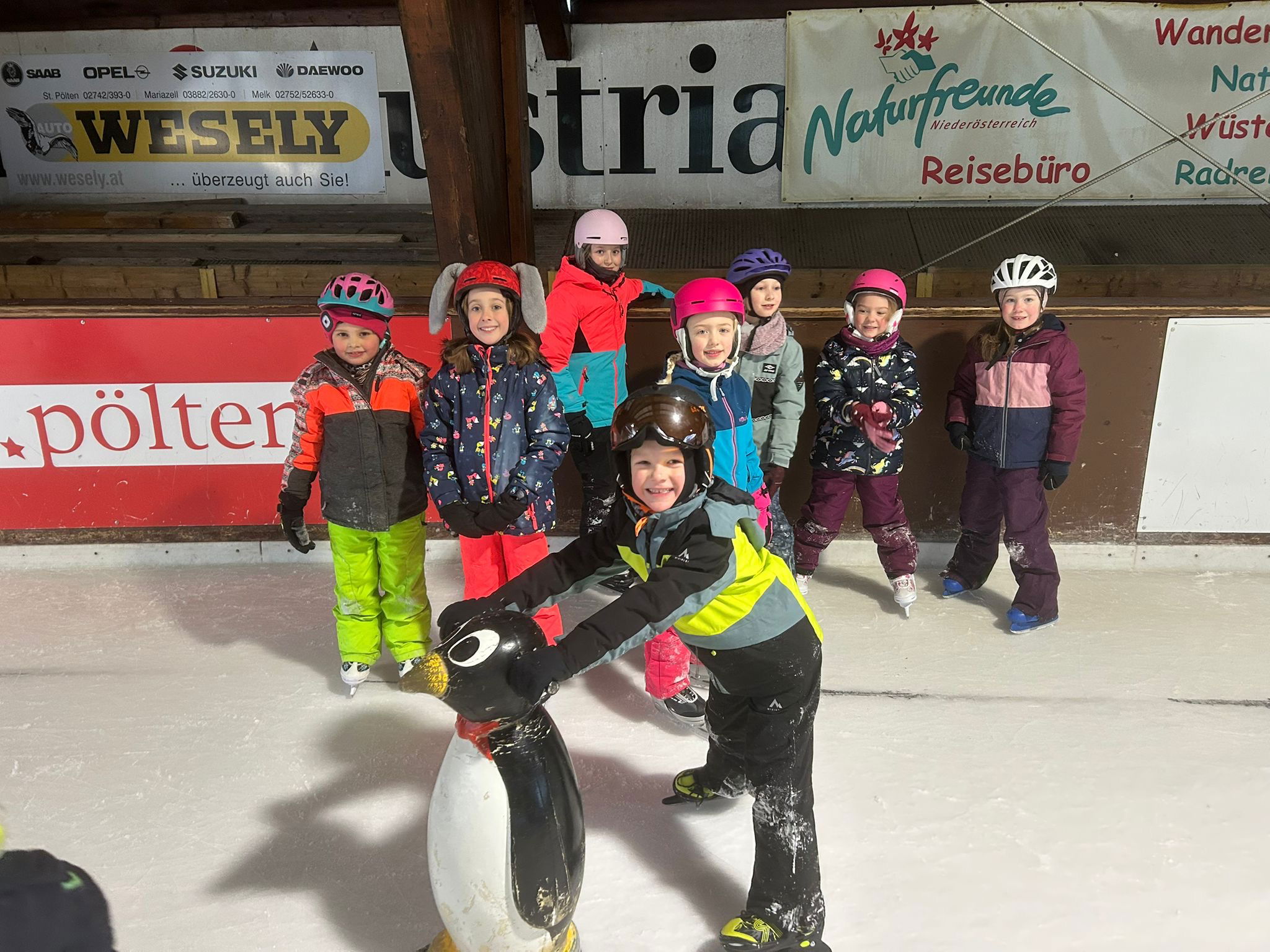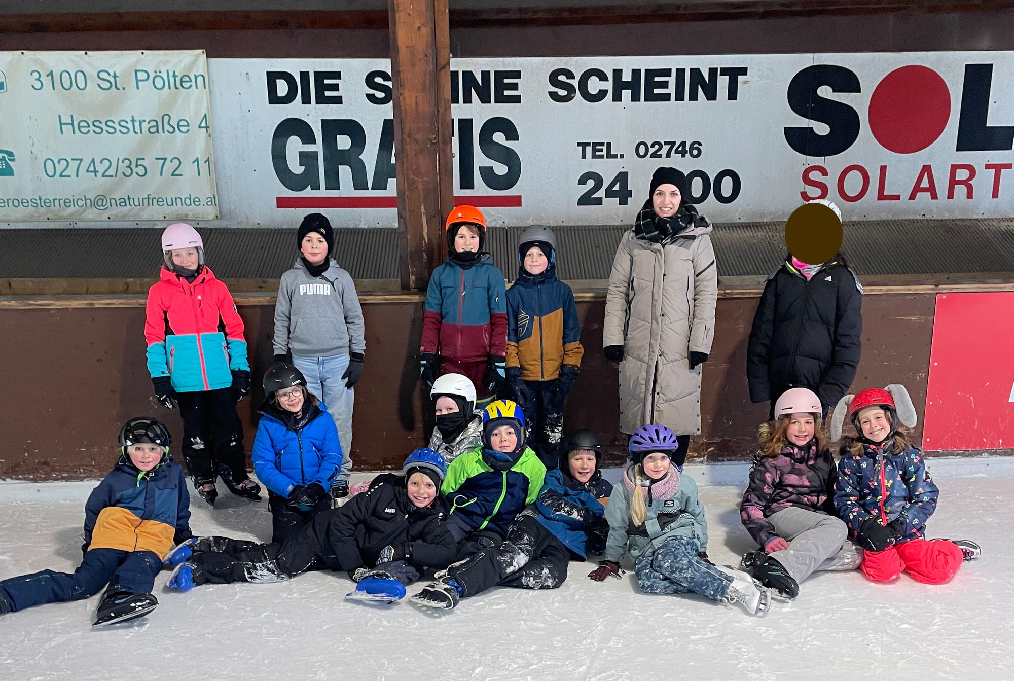Am Freitag nach den Weihnachtsferien wagten sich alle Schülerinnen und Schüler auf das Eis. Bei eisiger Kälte zogen die Kinder fleißig ihre Runden auf dem Eisplatz. Dabei machten sie große Fortschritte und hatten viel Freude an der Bewegung.