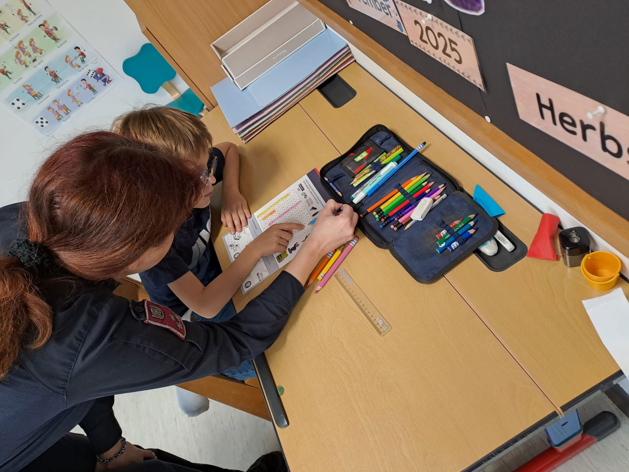 Im November bekam die zweite Klasse Besuch von der Polizei. Im Rahmen eines Workshops zur "Kinderpolizei" erfuhren die Kinder viele interessante Sachen rund um die Polizei. Frau Inspektorin Salzer zeigte den Schülerinnen und Schülern ihren Einsatzgurt samt Ausstattung, sie brachte ihnen die verschiedenen Ausführungen der Einsatzfahrzeuge näher und klärte die Kinder über diverse Gefahren im Zugverkehr auf. Als Abschluss absolvierten die Kinder noch ihre Ausbildung zur Kinderpolizistin bzw. zum Kinderpolizisten. Es war ein gelungener Workshop.